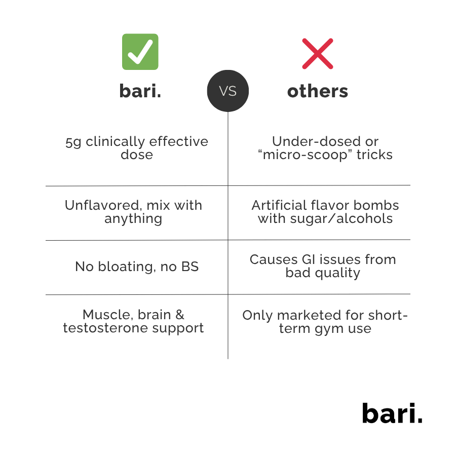 Unlock your strength and size potential with the most studied and effective supplement in the game. Bari’s Creatine Monohydrate is 100% pure, clean, and dosed for real results. Whether you’re bulking, cutting, or trying to gain respect in the gym — creatine is the foundation*