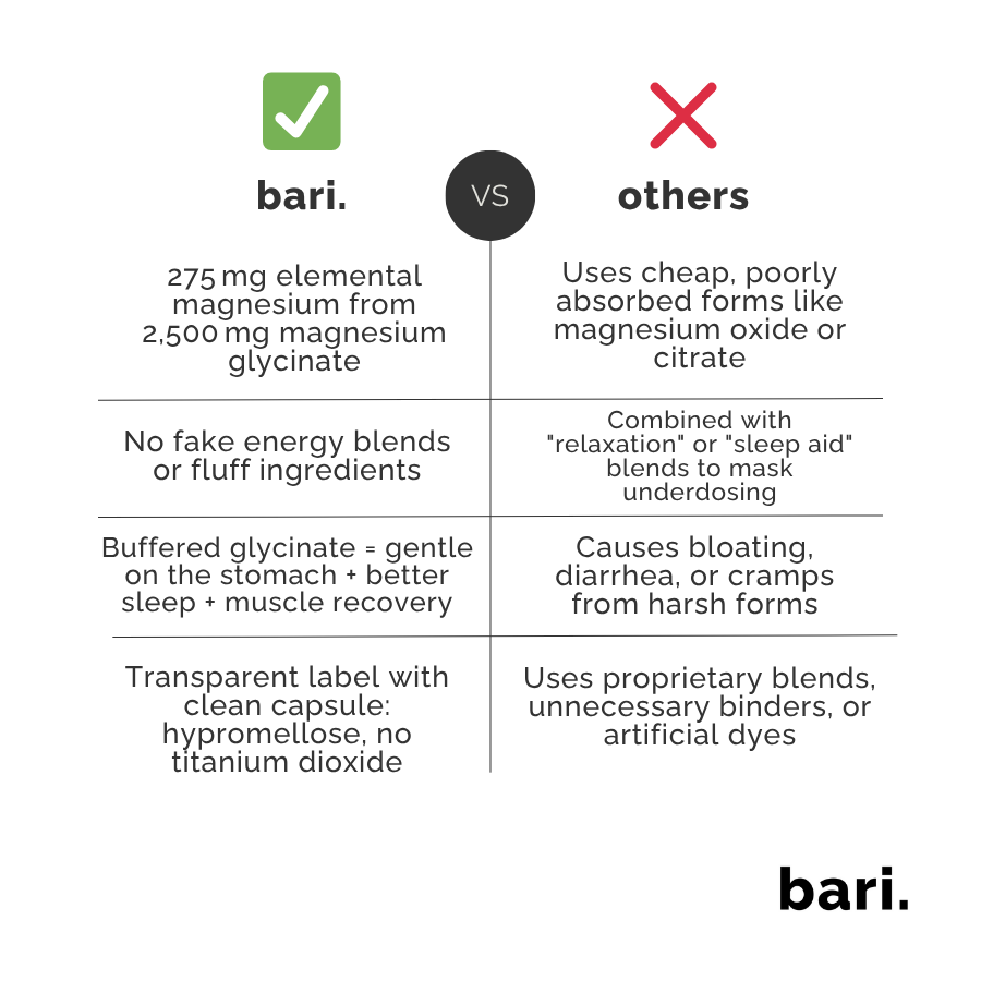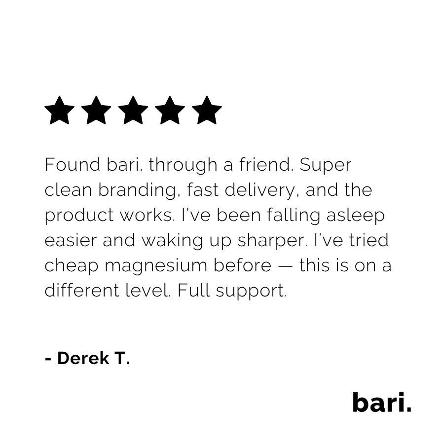 Bari Magnesium Glycinate helps you get deeper sleep, better recovery, and calmer focus, so you can come back stronger every day.
