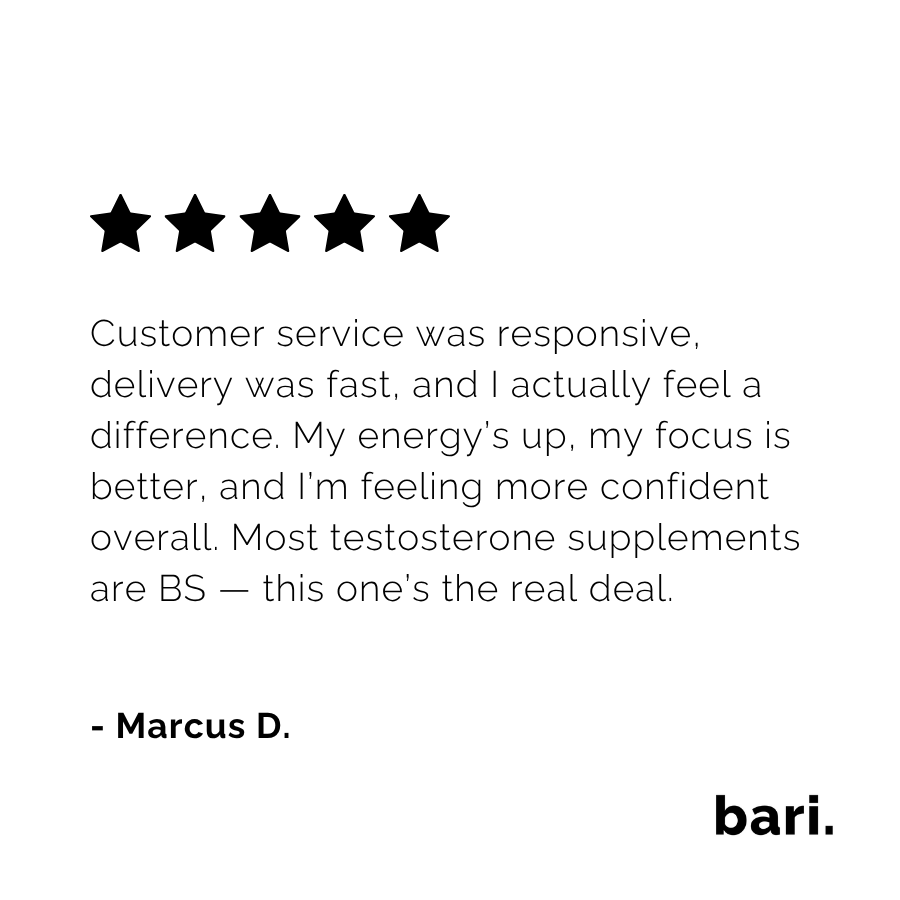 Bari’s Men’s Vitality Formula is a full-spectrum blend of testosterone-supporting ingredients designed to help you feel stronger, more focused, and fully in control.